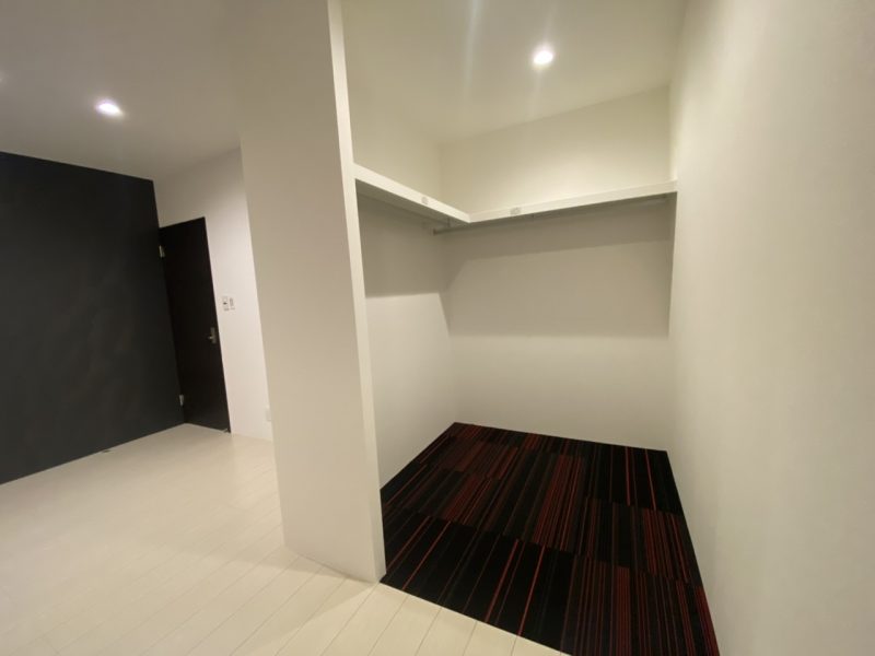 2階主寝室には便利なウォークイン・クローゼットが有り、床はカーペットを使用しているので衣類にホコリが付着するのを軽減できる様に設計しています。
