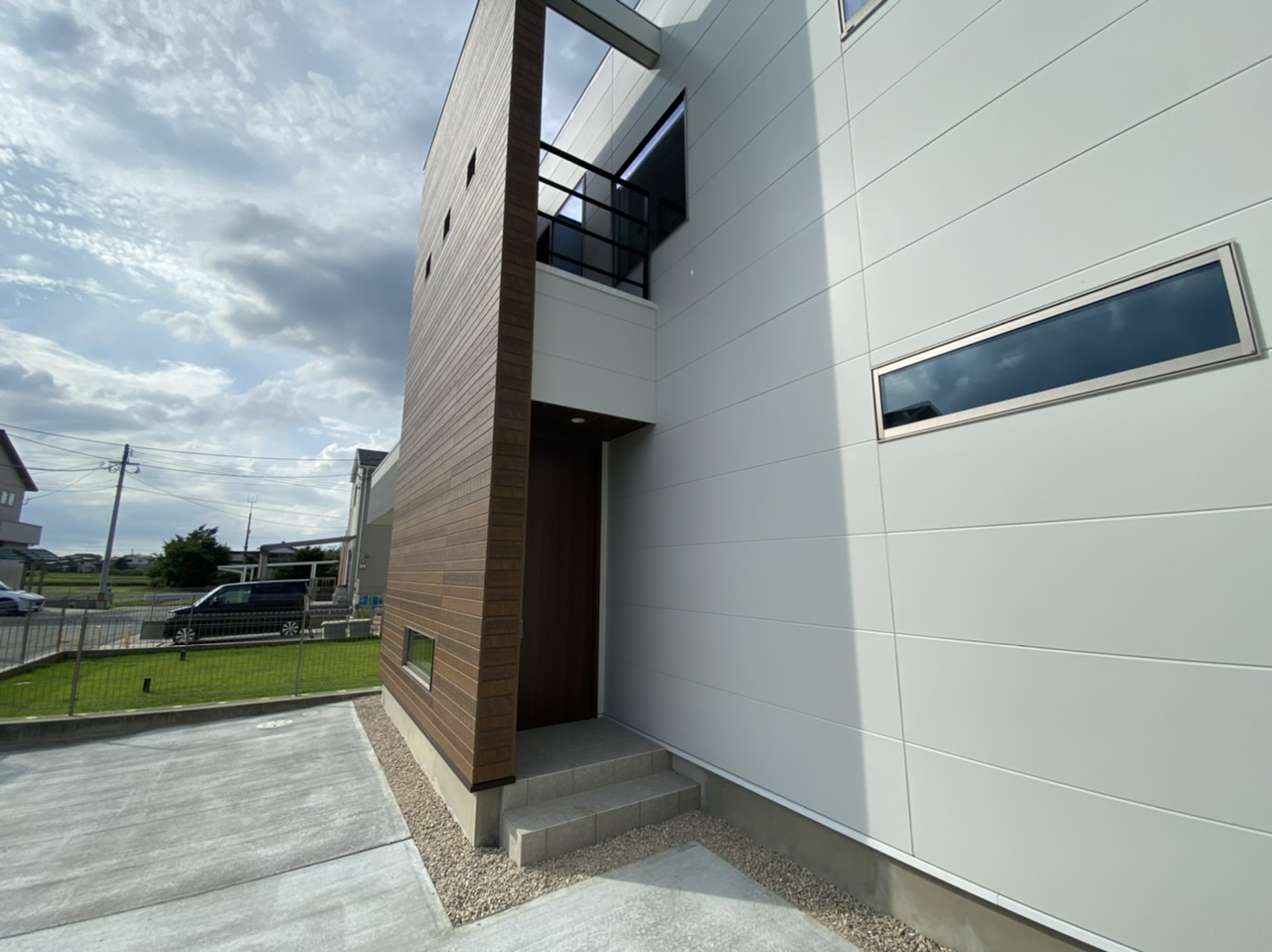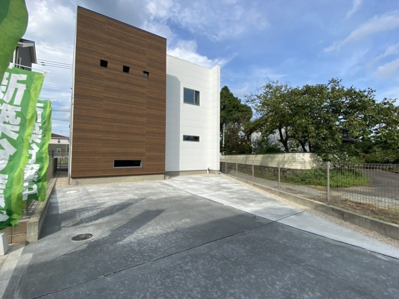 - プロパンガスでの販売をさせていただきましたが、オーナー様がオール電化に変更されました。 敷地形状が三角地で駐車スペースが多少デメリットでもありますが、それをメリットに変える建物のデザインと駐車場全面コンクリート床にして利用しやすくしました♪