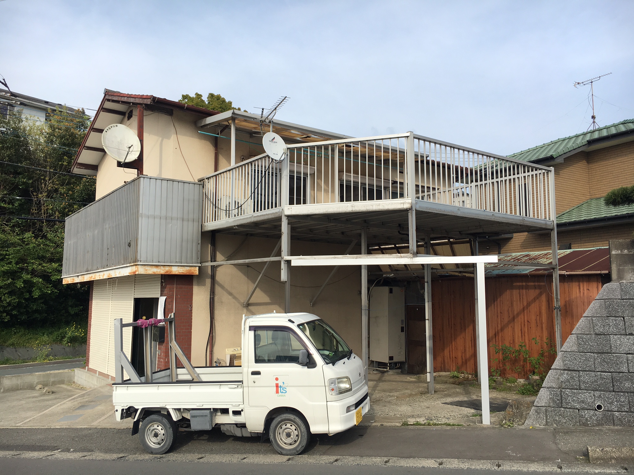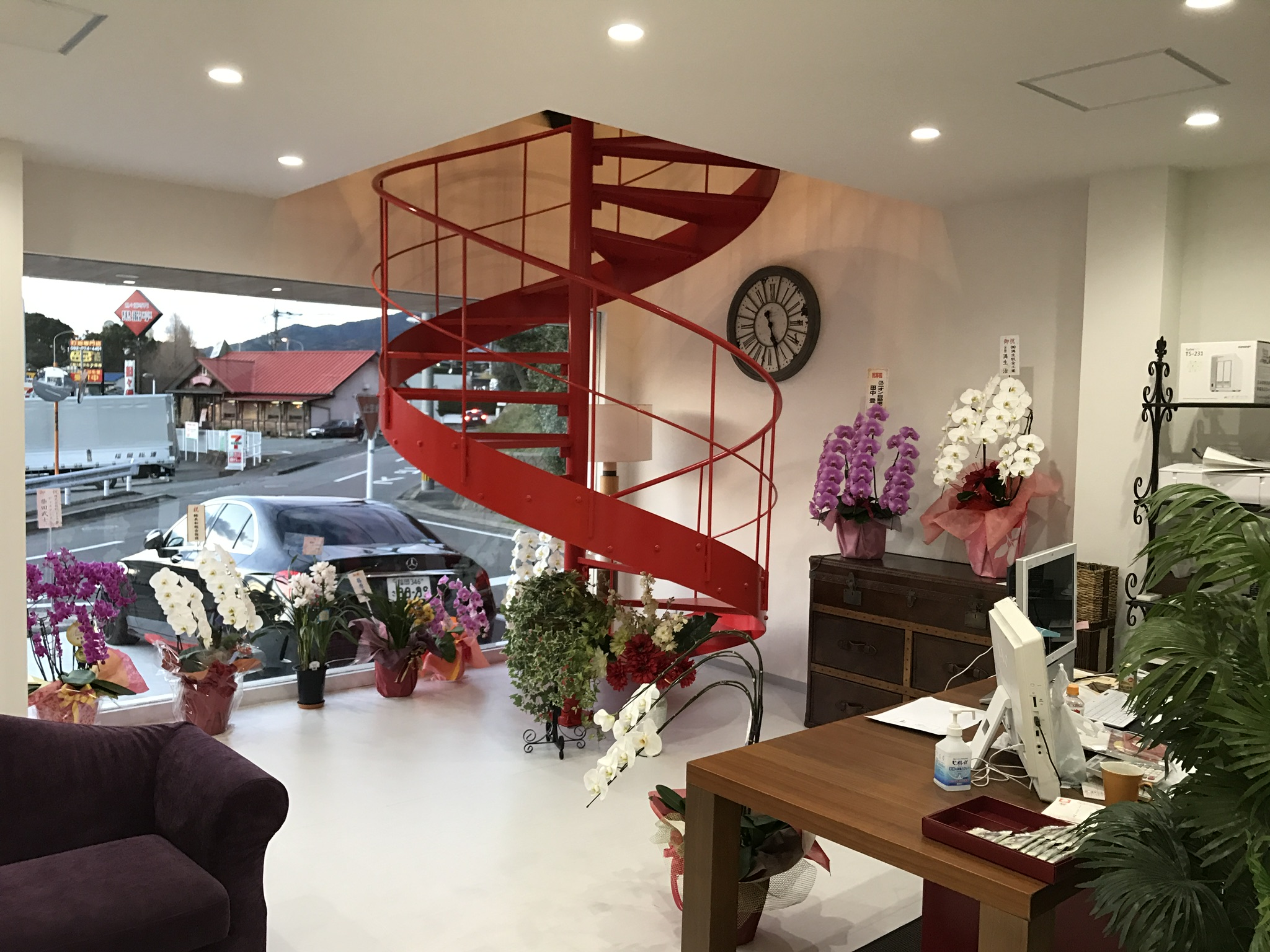 築40年の中古住宅兼事務所を購入し、自社事務所としてリフォームをしました。瓦屋根は全て撤去をしてパラペットを作り背の高い建物にしました。玄関ガラスはそのまま利用してお洒落な玄関アプローチに出来ました。 螺旋階段を設置してお洒落な事務所に… 外壁も既存の塗り壁の上に鋼板をカバー工法にて張り、古さを感じさせない建物にしました!! これがリフォームとは思えないと皆さんに言ってもらえます! 当社ではこの様な新築に似せたリフォームも行なっております。