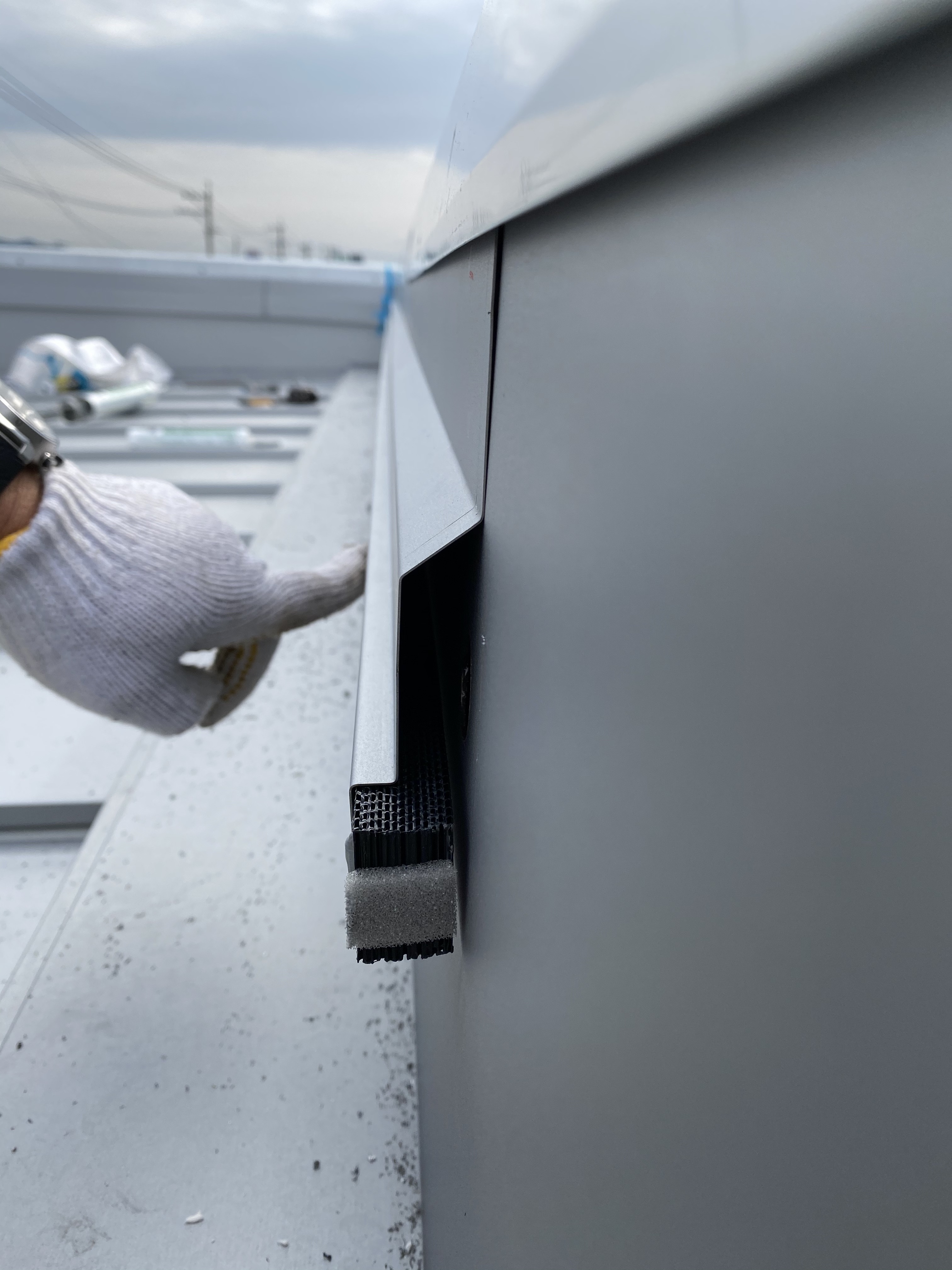 自社の分譲住宅では笠木もしくはパラペット内側で通気層を設置しています。 リッチベンツ(通気パッキン)を取り付けて害虫や雨が降込まない様に施工しています。 近年の夏場での屋根や外壁の表面温度は50~60度にもなっています。 当社では屋根や外壁からの熱を逃がす様に設計をして、室内の温度上昇も抑え壁内結露も防止する施工をしております。